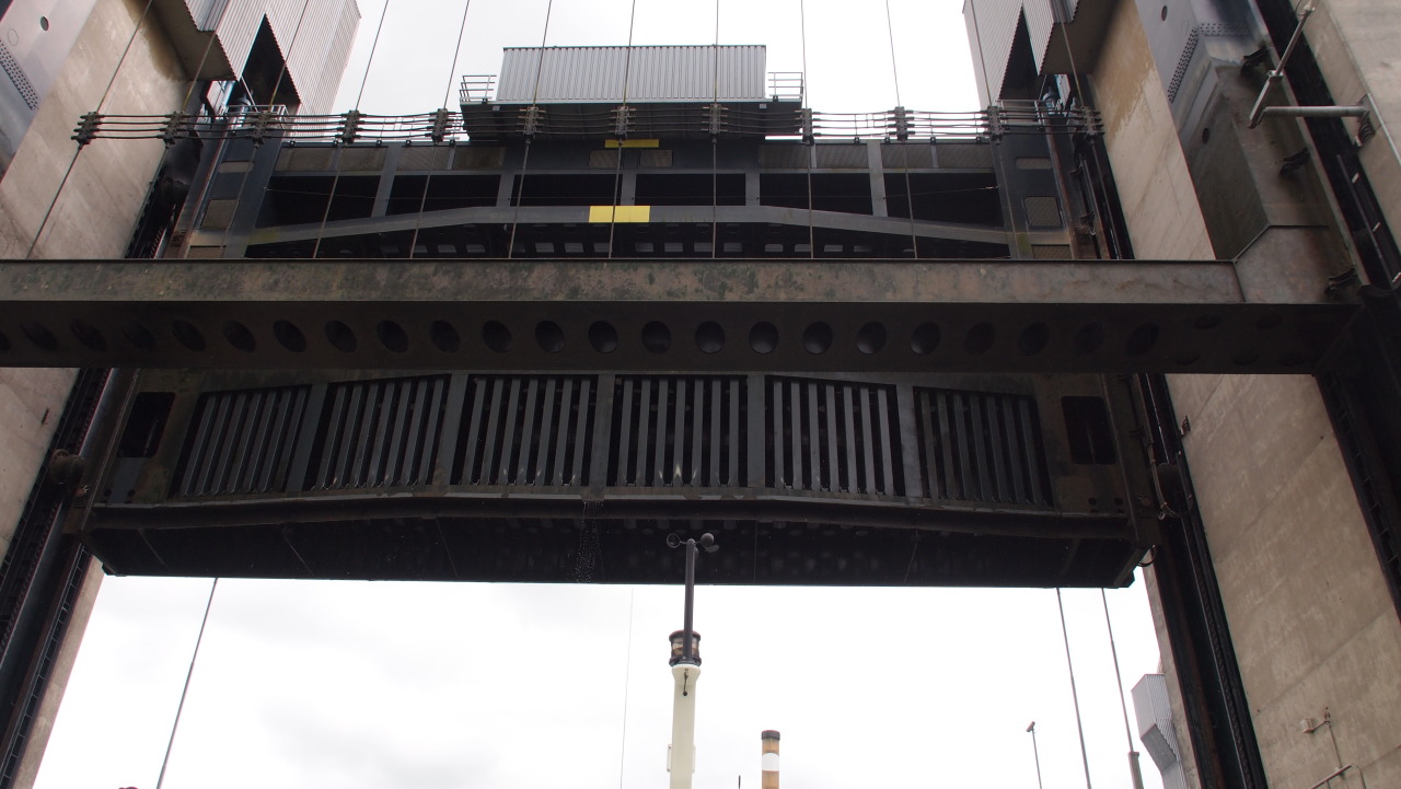 Wir haben also 25o Schleusen abgearbeitet, denn es ist richtig Arbeit, die 2o Tonnen immer still zu halten und sich keine Schrammen zu holen, und wir sind die höchste Schleuse hochgehoben worden – immerhin 16 Meter – und haben ein Schiffshebewerk benützen können, welches 44 Meter auf- und abhebt, eine schräg bewegliche Wanne für zwei solcher Boote wie unseres.