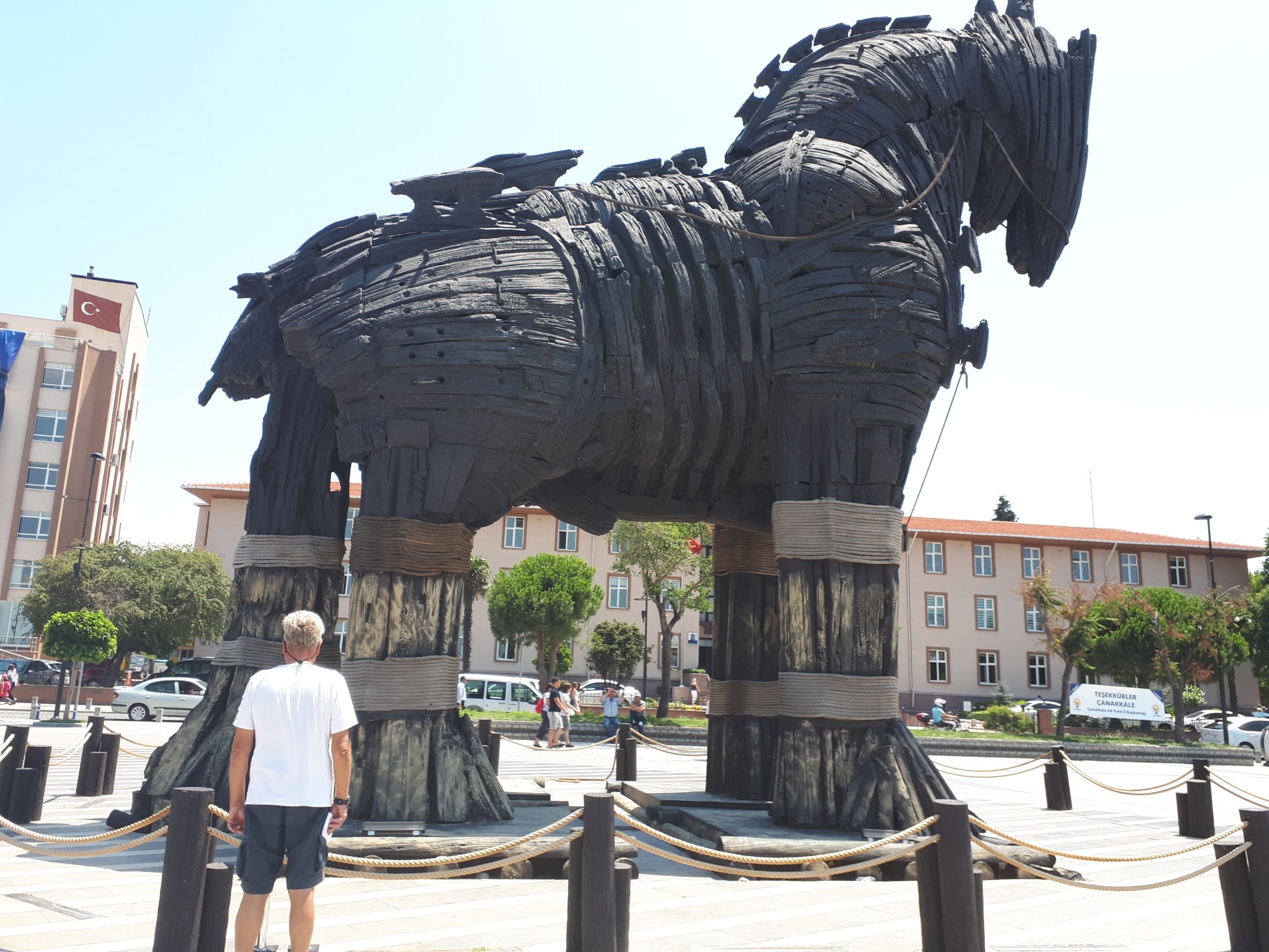 Das Pferd aus dem Film mit Brad Pit steht auf dem Marktplatz, und somit genau vor unserem Hafen.