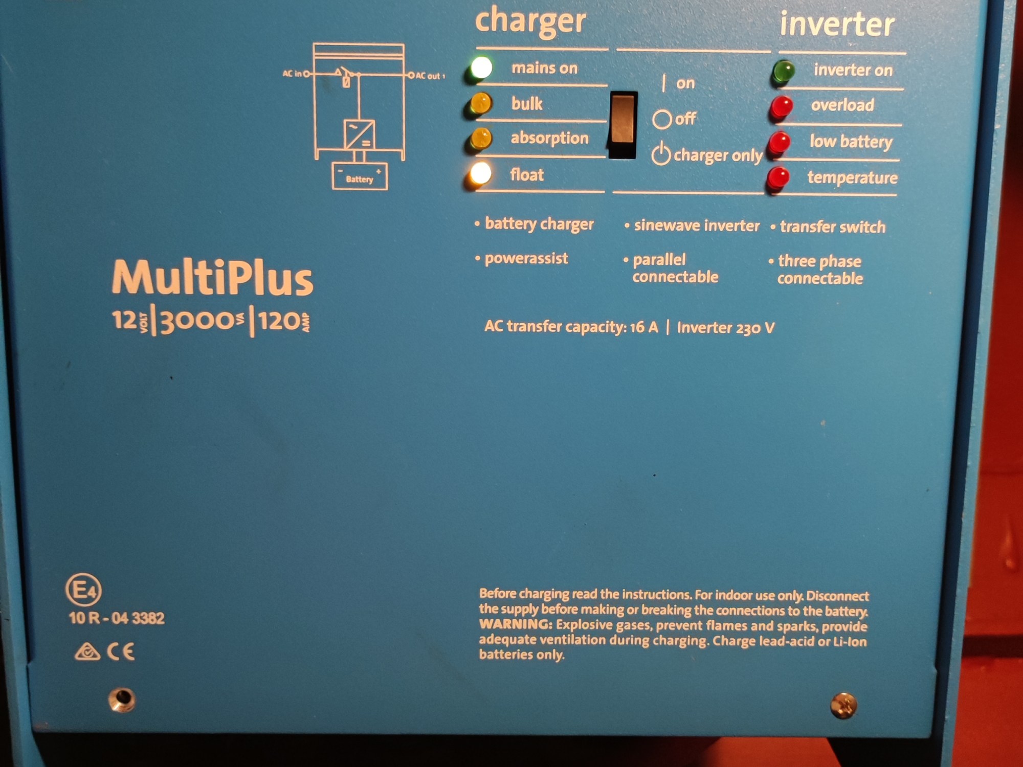 Als wir den Strom legen wollten und ich wie üblich nach unten ging um zu sehen, ob alles klappt hat die Inverter Schalttafel wie verrückt geblinkt. Karlheinz hat sich überzeugen lassen, dass da etwas nicht stimmt, Er glaubt inzwischen ich habe einen Elektroschadenstich wegen dem Bugstrahlruder und dem Schaltproblem des Steuerbordmotors.