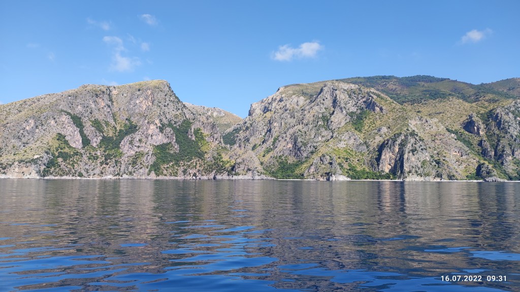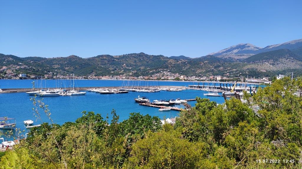 Wir wollten in Sapri ankern am nächsten Tag, auf der Fahrt dahin habe ich versucht, die von Mimo in Bolaro empfohlene Cantiere in Castellamare anzumailen und es hat sich herausgestellt, die gibt es nicht mehr. Ich habe versucht über Emanuelle, von dem ich wusste er montiert gerade eine Anlage dort und über Mimo, der uns die Cantiere empfohlen hatte etwas herauszubekommen, unterhalb Roms war keine Servicestation im Internet zu finden. Zwei Stunden vor Sapri fragt Mino, wo wir sind und schickt mir die Daten einer Cantiere in Sapri. Ich habe Kontakt aufgenommen, die lapidare Antwort war, ruf an wenn Ihr in der Marina seid und sagt mir in welcher, es gibt Zwei. Wir haben natürlich in der Teuren einen Platz bekommen, waren noch gar nicht ganz fertig, die Mooring Leinen eine Katastrophe, es hat sicher eine halbe Stunde gedauert bis 5 Mann einschließlich meines Capitanos in immer schärferer Tonlage sich endlich auf einen Liegeplatz und die dazugehörigen Mooring Leinen geeinigt hatten. Ich selbst hatte nichts zu tun, habe in der Cantiere angerufen wie verabredet, der Chef war da bevor wir richtig fest waren, hatte das Problem schon ohne hinzuschauen erkannt, hat einen Blick in den Motorraum geworfen und gesagt, um fünf kommt er wieder, jetzt ist es da unten zu heiß, recht hat Er.