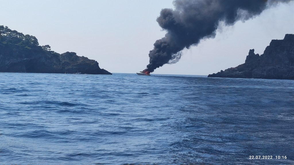 Ab 8,00 Uhr ging es zu wie auf einer siebenspurigen Strasse mit Gegenverkehr auf jeder Spur, das Wasser kam nicht eine Minute zur Ruhe, ein Seegang wie Windstärke 6 aber aus allen Richtungen, man hat sich kaum getraut einen Kaffee zu hohlen und den Anderen alleine an Deck zu lassen, die Küste zu geniessen war kaum Zeit, ein Boot hat gebrannt, der Seenotfunk hat einen Unfall nach dem Anderen gemeldet, der Brand war dann das Höchste , wir waren heilfroh endlich die Hauptstrasse verlassen zu können und Richtung Castellmare abzubiegen zu können.