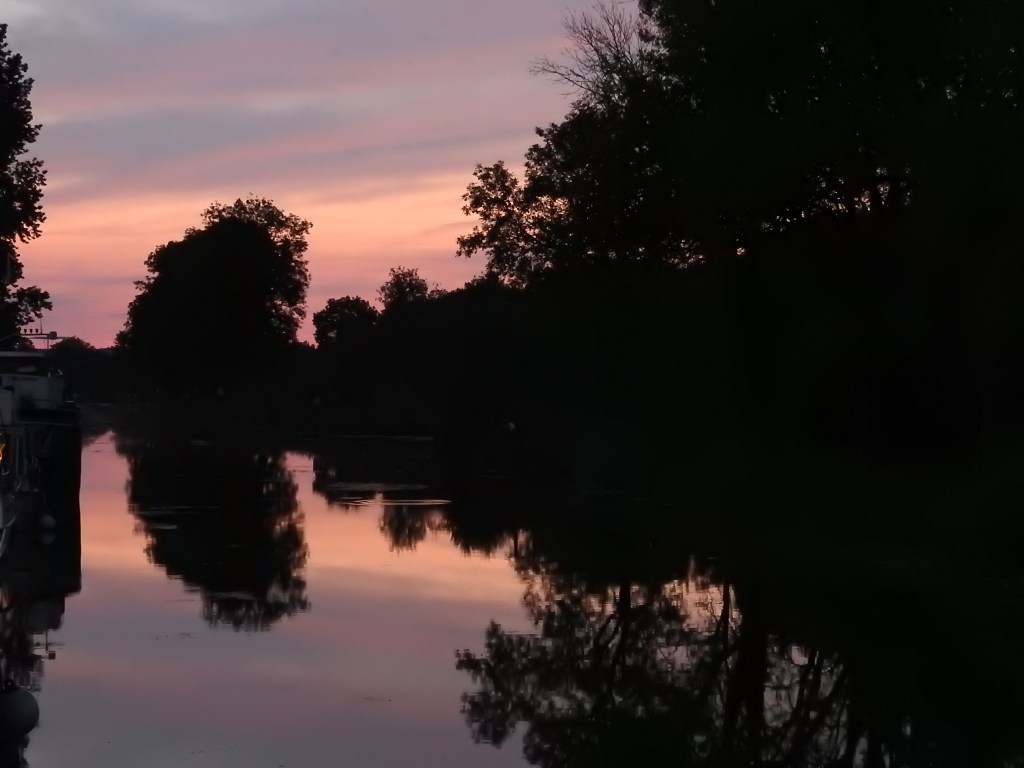In der Nacht ging ein gewaltiger Gewittersturm über uns hinweg, am nächsten Morgen war unser Schiff übersät mit Laub und kleinen Ästen, wir waren unter jungen Bäumen, unser Nachbarn unter den Alten, mussten wir erst einmal die Äste entfernen, damit sie aus dem Boot kamen.